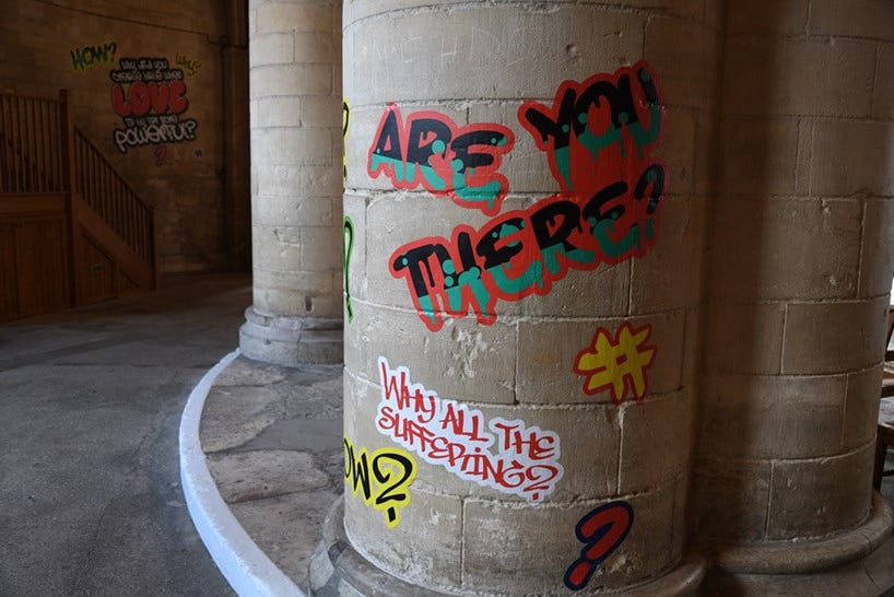 This week there have been more raised eyebrows about the ‘progressive’ tendencies of the Anglican Church. After recently appointing a woman who’s fine with same-sex marriage as the Archbishop of Canterbury (the spiritual leader of the Church of England), a new exhibition opening today at Canterbury Cathedral is drawing yet more heated / angry comments. HEAR US features graffiti-style works created in community workshops in response to the question, ‘What would you ask God?’